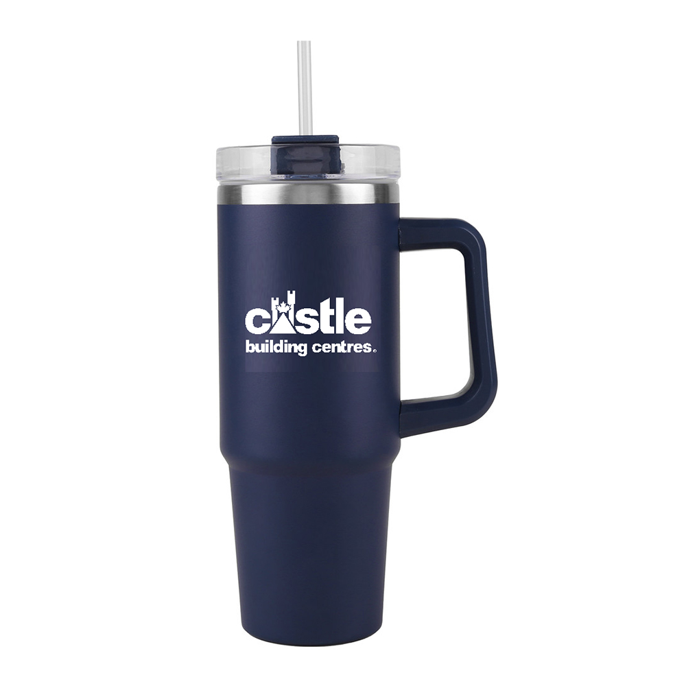 - Custom screw-on acrylic lid with a rotational tab for sippy access and a 10.5” clear PP straw